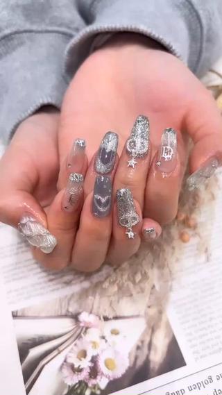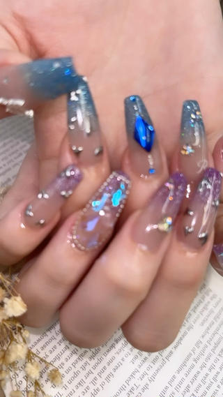 - ギャル系から可愛い系まで得意です🩵🩶 ロングネイルのビジューアートなどはお任せが多いです💎 好みを引き出します🌟🩵 お任せ大歓迎⭕️色混ぜできます︎👍🏻 ̖́- デザインや爪のお悩みがあれば、ぜひご相談ください! メニューに迷った時は、スナップフォトを参考にしてください!