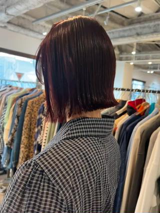 - カット、縮毛矯正、似合わせカット、切りっぱなしボブ、外はねボブ、前下がりボブ、ダブルカラー、ハイトーンカラー