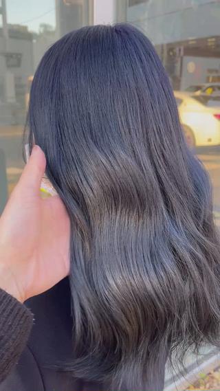 - ブルーブラックやコリアンブラックで透明感のある上品な髪色にします✨️ 暗髪でも垢抜けできます👍