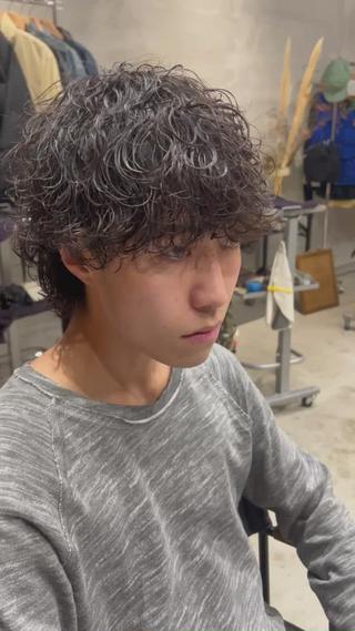 - カット、パーマ、センターパート、マッシュヘア、ニュアンスパーマ、スパイラルパーマ、ツイストスパイラルパーマ、カルマパーマ、メンズヘア