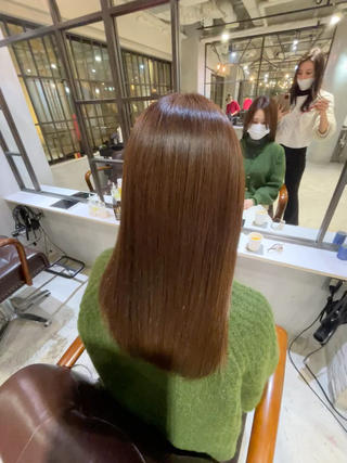 カラーもトリートメントもお気に入りです♡ カラーが曖昧なイメージだったのにも関わらず、色々提案してくださって超可愛いカラーになりました! トリートメントも元々ブリーチ毛で傷んでいたのに、びっくりするくらいサラサラ艶々になって大満足です! トリートメントは続けてたほうが持ちが良くなるらしいので 定期的にやりたいなと思います! 施術中も気さくに話しかけてくださったので、緊張せずに楽しく過ごせました😊 またお願いしたいです♡ ありがとうございました!