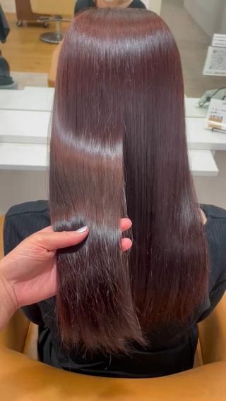 - 透明感カラー、切りっぱなしボブ、カラー、縮毛矯正、カット