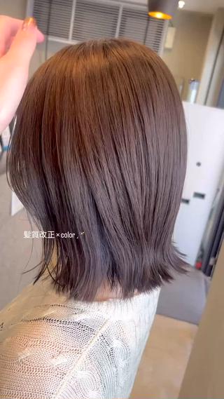 おゆちゃんさま!先日もカラーを任せていただきありがとうございました!そして大変嬉しいコメントありがとうございます😭!アッシュ系ブラウンとてもお似合いでした!色落ちも可愛いカラーです😊!今回させていただきました髪質改正カラーは髪に潤いを与え保湿し、髪の内部の組織を補修、さらに補強することで、髪のフォルムを整える効果があります、毎度のカラーにプラスして続けることで気になるパサつきや広がりなど抑えてくれる効果もございます♪また機会がありましたらよろしくお願いいたします😊