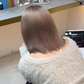 - ハイトーンカラー、ケアブリーチ、艶カラー、切りっぱなしボブ、カラー、カット