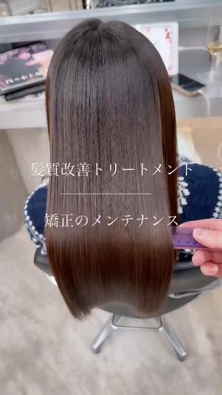 縮毛矯正でお店を探していると、こちらの口コミが評価良かったので、6年ぶりに縮毛矯正をしました! 6年前にした時は、真っ直ぐになりすぎて違和感で終わりあまり良いイメージでは無かったですが、今回こちらでは髪の毛の質感やストレートパーマと縮毛矯正はどちらが効果的なのかなど細かくカウンセリングしていただきました。 最初は久しぶりの施術なので、不安でしたが丁寧に対応してくださり、最後までリラックス出来ました! 値段はそこそこしても、やる価値はとてもありますし、暇にならないように動画見せていただいたり、飲み物の提供や試作のデザートなどたくさんのサービスがあり、とても感動しました。 お話しするのが大好きな私の話もちゃんと聞いて、たくさん話せて2時間があっという間でした! 今まで特定の好きな美容室が出来なかったのですが、今回の対応がとても素敵で、また通いたいと思いました♫ たくさんお時間取らせてしまいましたが、最後まで素敵なおもてなしありがとうございます!
