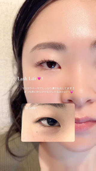 丁寧すぎる接客と施術と手際の良さであっという間に終わり、目元を見たら今流行りの束間まつげで♡嬉しすぎて友人にも自慢しちゃいました(〃ω〃)次回もよろしくお願いしますっ♡