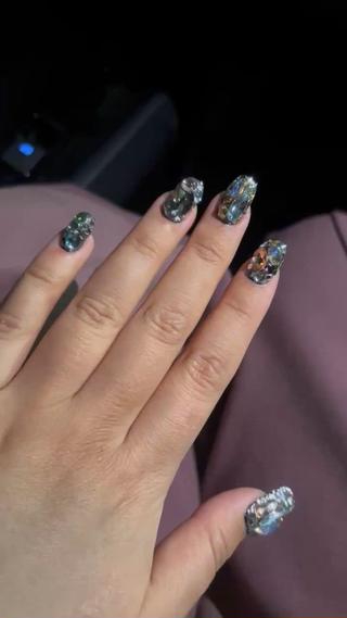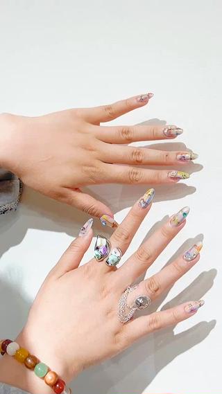- ミラーネイル、韓国風ネイル、個性派ネイル、手描きネイル、持ち込みデザイン