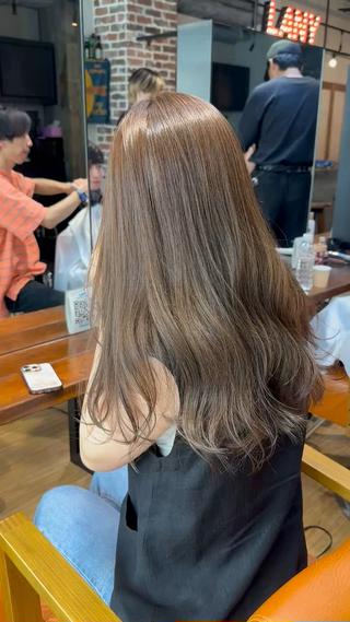 - ハイトーンカラー、透明感カラー、センターパート、レイヤーカット、くびれヘア、韓国風ヘア、似合わせカット、ブリーチ、カラー
