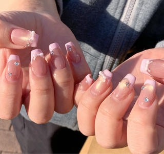 - ちゅるんネイル、韓国風ネイル、オフィスネイル、シンプルネイル、フレンチネイル、グラデーションネイル、ワンカラーネイル、ジェルネイル、長さだし、持ち込みデザイン