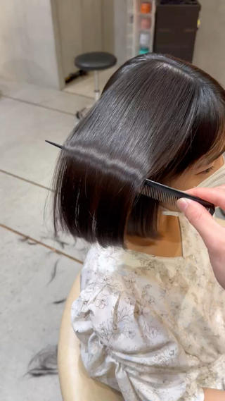 - 切りっぱなしボブ、レイヤーカット、くびれヘア、韓国風ヘア、縮毛矯正、カット