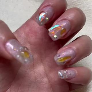 友人の結婚式があるため、せっかくならと気合を入れてネイルをお願いしました。 本来なら事前に写真などを準備しておいた方がいいのかもしれませんが、ネットで探してもピンとくるデザインが見つからず、当日に好みの雰囲気をお伝えするという形に… どうなるかドキドキでしたが、私のイメージを上手に読み取ってくださり、大満足な仕上がりでした!!! 帰り道、気がつくとずっと爪を見てしまうくらい本当に可愛い…♡ カラーも豊富でラメ等も選べるので、迷ってしまいましたが、親身に相談にのってくださり、分からないことは丁寧に教えてくださいました。 会話も楽しく、あっという間に時間が過ぎてしまう居心地がいい空間でした。 可愛い爪で友人の大切な日を迎えられるのが嬉しいです!ありがとうございました! 是非また宜しくお願い致します。