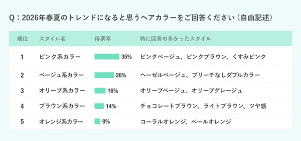 ここからは現役美容師159名のアンケート結果をもとに、2026年春夏トレンドヘアカラー予想をランキング形式でご紹介します!