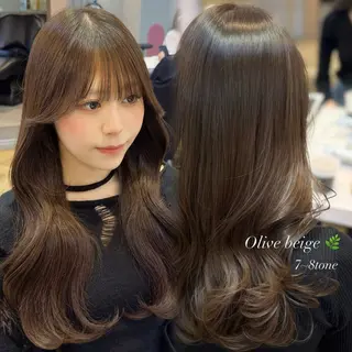 福岡の天神で美容師をしているKYONです!!この度は数あるサロンの中からご覧いただきありがとうございます🙇♂️ブリーチなしで叶える、やわらかな透明感のミルクティーベージュ✨レイヤーカットと組み合わせることで、地毛の赤みを抑えつつ、透け感・ツヤ・動きを同時に表現します。光に当たった時の柔らかな質感と、ふんわり揺れる毛流れが魅力です。髪に負担をかけず、自然体で女性らしい印象へ。レイヤーを入れることで重さを残しながらも軽やかに見え、仕事や学校で明るさ制限がある方、ブリーチに抵抗がある方にもおすすめです🌿🌟こんな人に特におす...