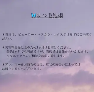 📸施術後のお写真をSNSに使用させていただける方ですと、ご案内がスムーズな場合がございます!※掲載の可否はカルテにて確認させていただきます※掲載はお目元のみとなり、個人が特定されない範囲での使用となります💁♀️メニューによってはお時間融通効きます!メッセージにてご連絡ください💌⚠️ホットペッパービューティーからのご予約を優先させて頂くため、タイミングによってはご希望に添えない場合がございます。ご了承ください🙇♀️⚠️ご新規のお客様はカルテ記入、カウンセリングございますので、必ず10分前のご来店をお願い致します🙇♀️⚠️お時間に間に...
